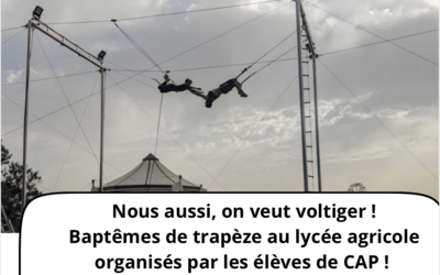 Dans le cadre de l'éducation socio-culturelle, une spécificité de l'enseignement agricole, nous souhaitons permettre à un jeune public éloigné des structures culturelles d'avoir la chance de découvrir une activité artistique telle que le trapèze volant.