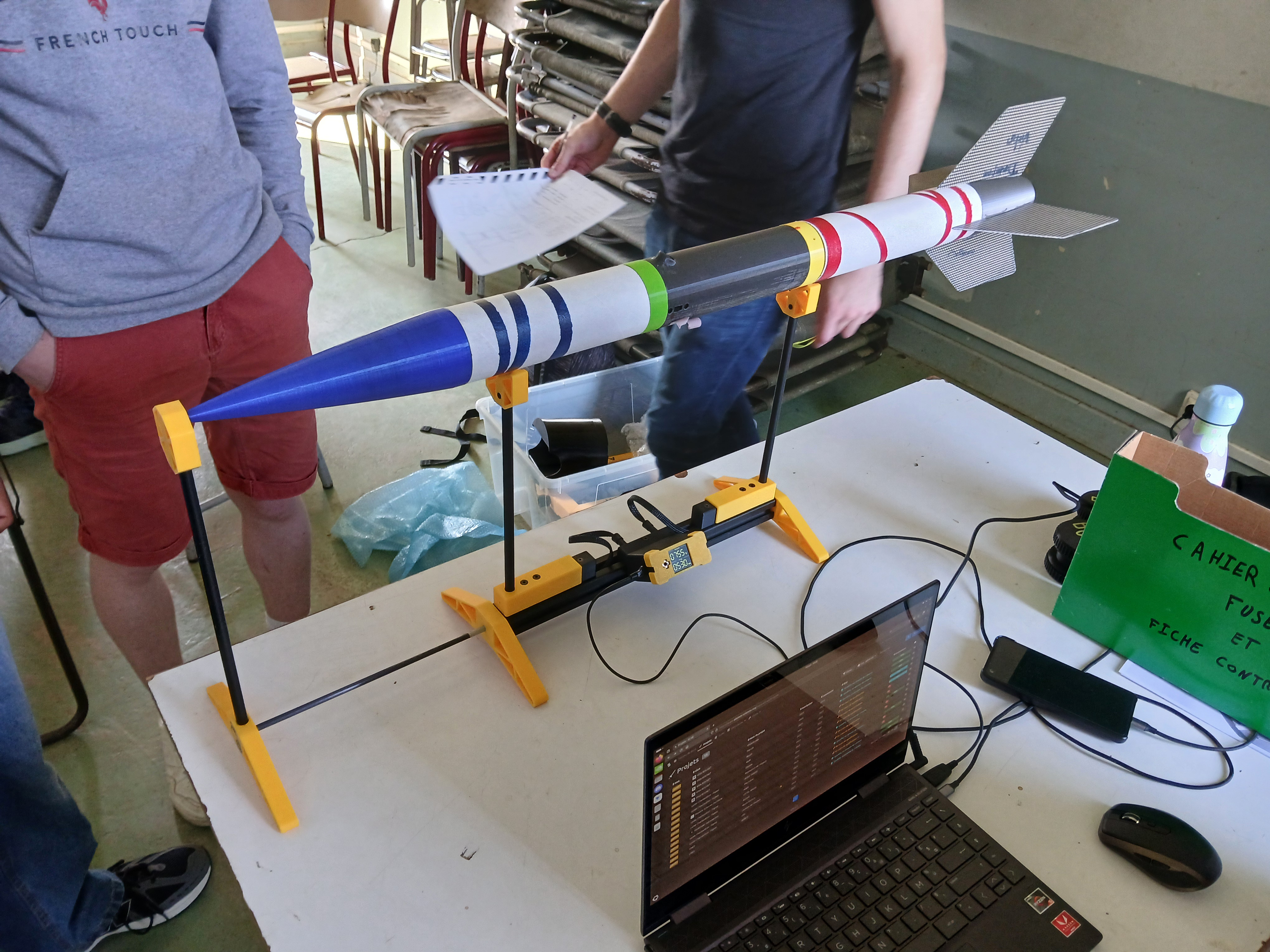 Nous fonctionnons en projet par équipe de 4 élèves. Chaque équipe conçoit, réalise et tire sa propre fusée, 8 cette année!