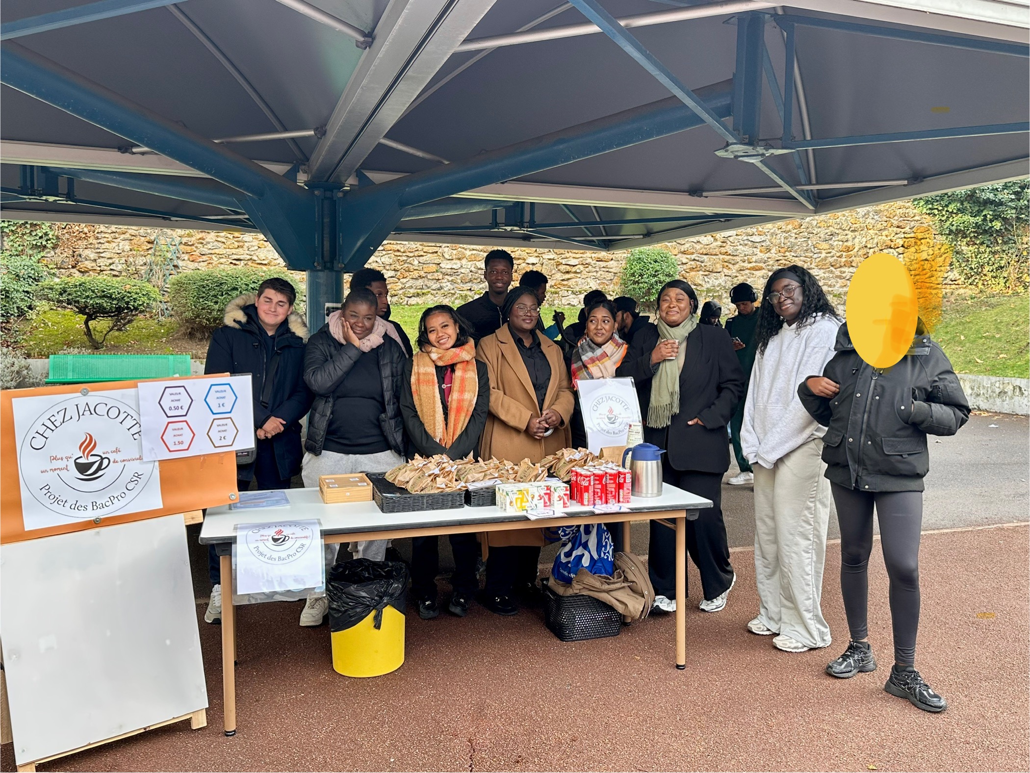 Tout s’accélère fin novembre 2025, avec la réalisation d’un calendrier des ventes journalières jusqu’aux grandes vacances. Les enseignants de l’Enseignement Général rejoignent les deux équipes pour encadrer les ventes aux récréations. Des jeunes de 1ère année CAP HCR se porteront volontaires pour vivre l’expérience « Chez Jacotte ».