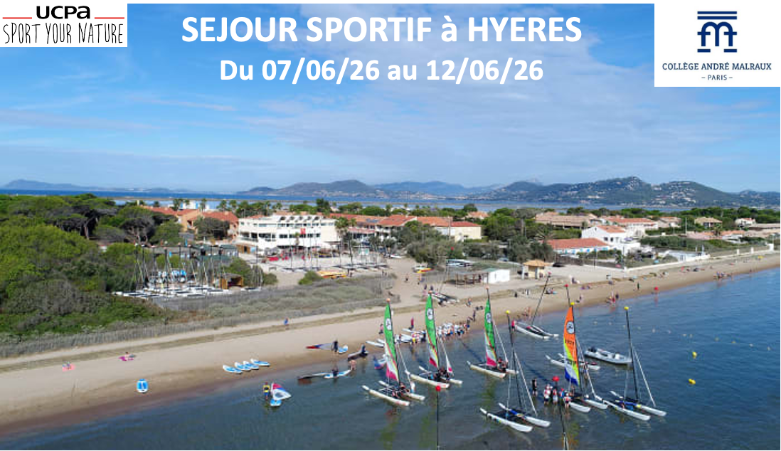 Les élèves de 5ème du collège André MALRAUX (situé dans le 17ème arrondissement de Paris) mènent un projet alliant santé, activité physique et bien être. Le séjour sportif à Hyères constitue la finalisation de ce projet.