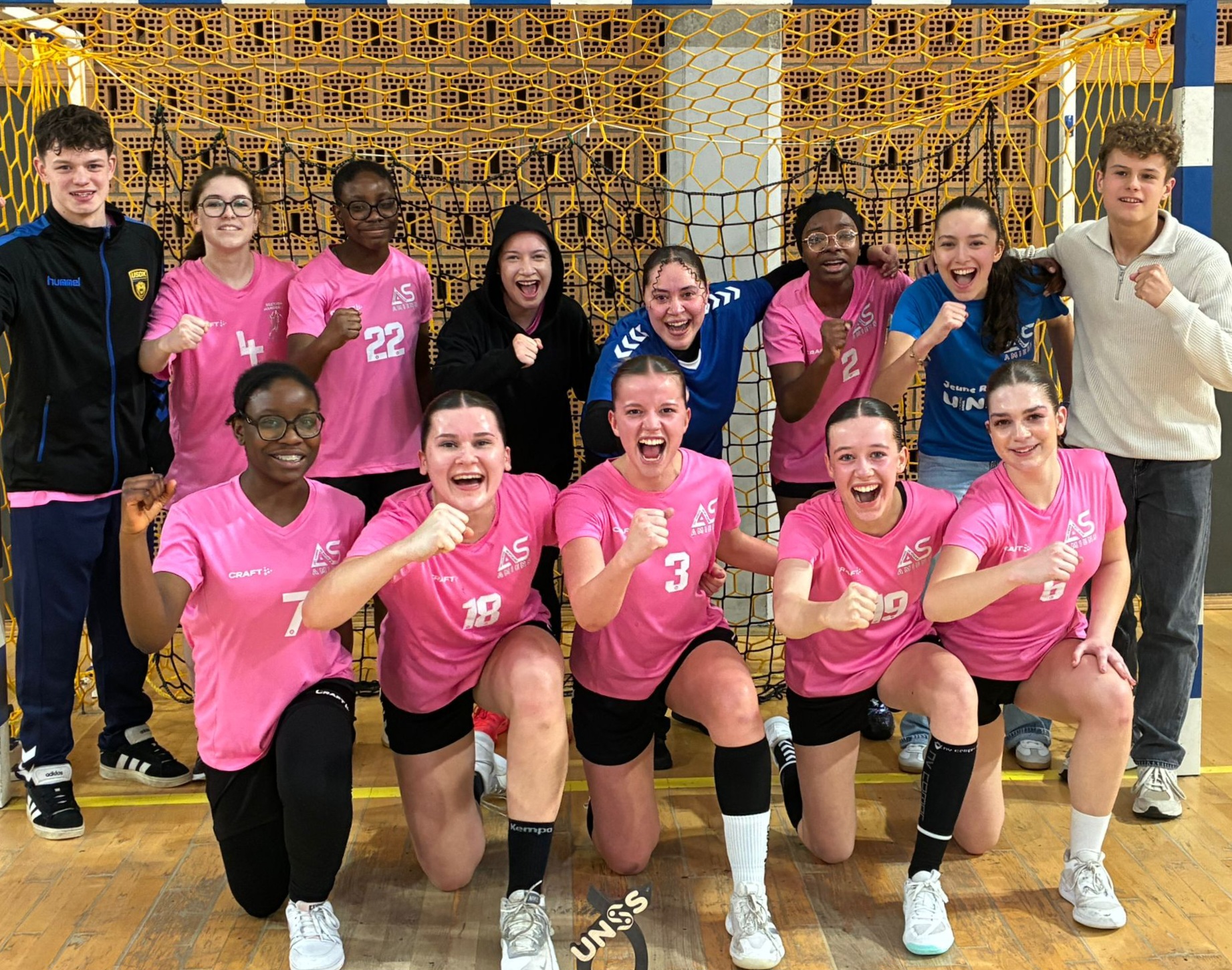 Composée d'élèves de classes de seconde, première et terminale, l'équipe féminine de handball de l'association sportive de la Cité Scolaire Delambre-Montaigne s'est brillamment qualifiée, pour la deuxième année consécutive, pour le championnat de France UNSS. Après un parcours sans faute, débuté en octobre 2025, qui les aura vu remporter tous leurs matches et devenir championnes départementales, académiques et interacadémiques, nos filles sont maintenant centrées sur l'échéance nationale. Etablissement de 800 élèves, situé au sein du quartier Nord d'Amiens, le lycée JB Delambre possède une forte culture sportive à travers ses enseignements de l'option EPS et de la Spécialité EPPCS mais aussi à travers l'existence de ses deux sections sportives, handball (filière masculine) et circuit-training, et de l'implantation du Pôle Espoir handball masculin des Hauts de France. Dotée donc d'une image "lycée sportif" très présente dans notre académie, notre association sportive connaît de très bons résultats dans les différentes compétitions UNSS auxquelles elle participe. Notre action éducative est également une réussite en termes de formation des "futurs dirigeants". En effet, nous comptons actuellement une quarantaine de jeunes officiels formés dans différents rôles tels que jeunes coaches, jeunes arbitres et jeunes reporters.