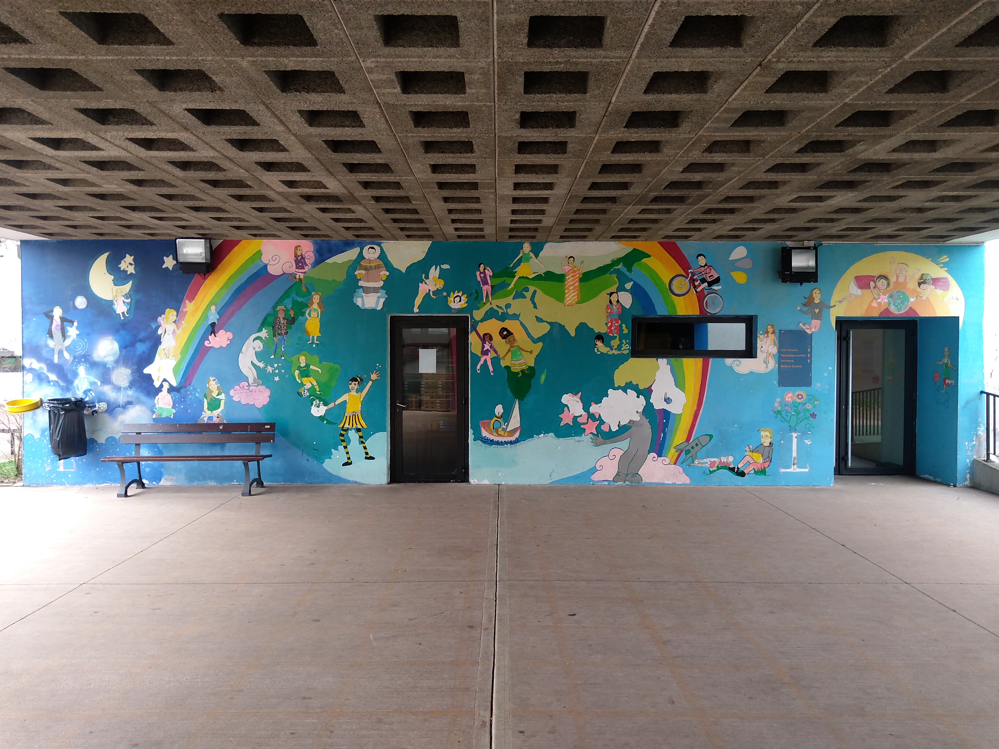 Aidez 24 élèves d'une classe de CE2 à réaliser une fresque murale sous le préau de leur école, à la suite d'un projet autour des fresques lyonnaises qu'ils ont vues.