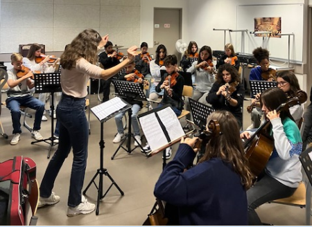 Des élèves de 3èmes apprennent à jouer en orchestre