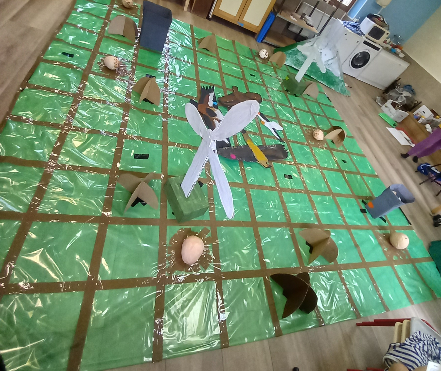 Cette année, les enfants créent un jeu grandeur nature intitulé "Vautour en danger" (jeu coopératif qui permet de mettre en exergue les principaux dangers que rencontrent les 4 vautours du Vercors : le gypaete barbu, le percnoptère, le vautour moine et le vautour Fauve). L'année prochaine nous essayerons de le réaliser en version plateau. Nous avons le souhait de les emmener au festival du jeu de société à Lyon en mai 2026 pour y rencontrer des créateurs et leur poser des questions.