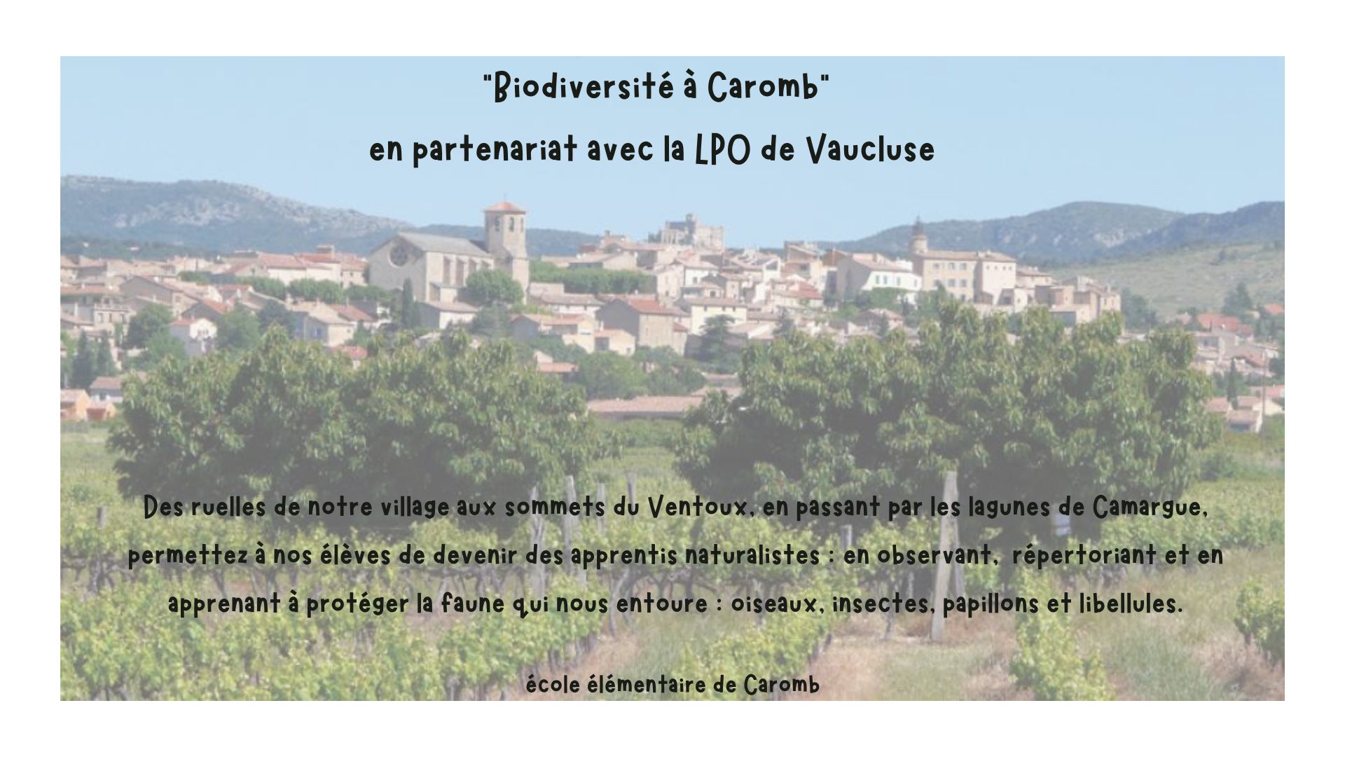 Ce projet "Biodiversité à Caromb" s'inscrit donc pleinement dans notre projet d'école.