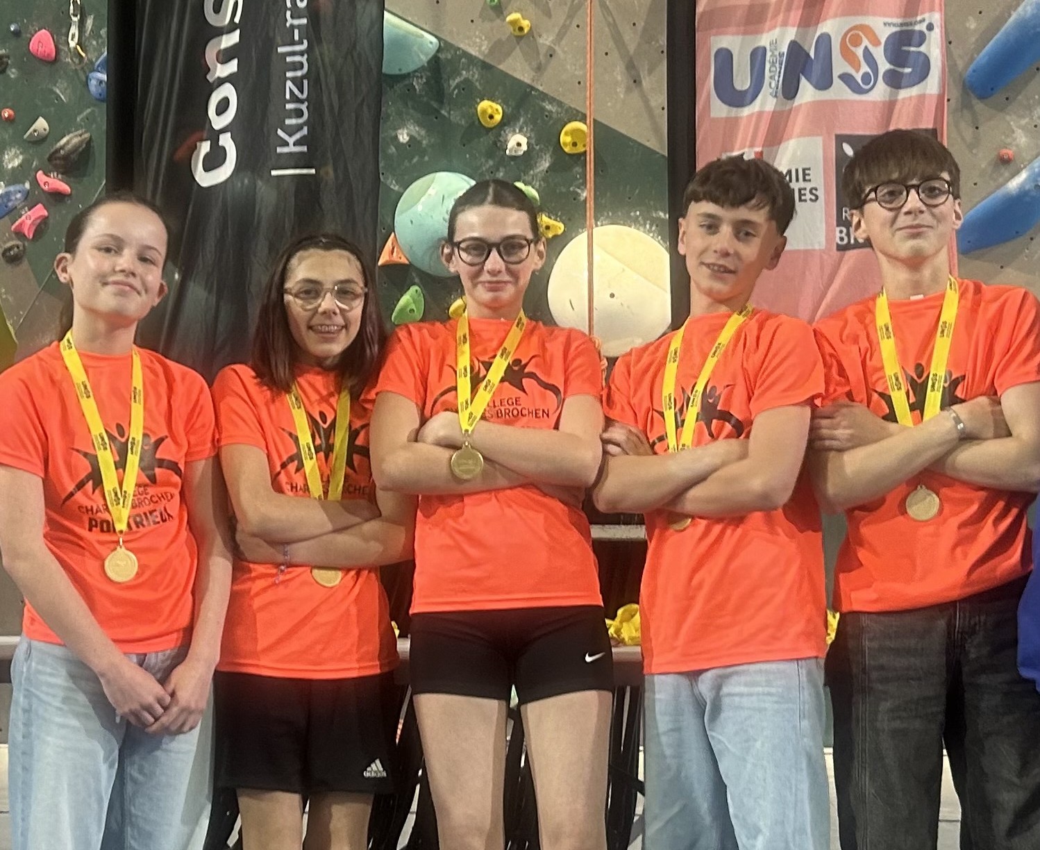 Nous sommes cinq élèves du collège Charles Brochen de Pontrieux dans les Côtes D'armor. Un petit collège dynamique de 200 élèves en zone rurale. Nous participons à l'UNSS (sport scolaire) le mercredi après-midi. Nous sommes champions académiques Bretagne en escalade.