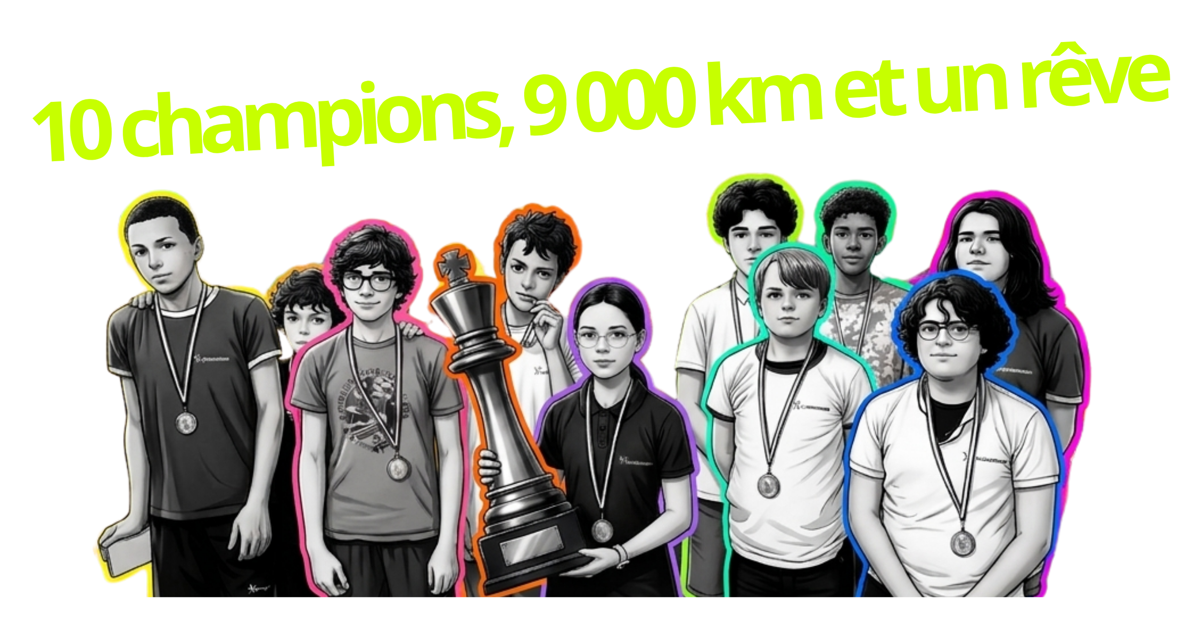 Nous sommes une équipe mixte de 10 collégiens réunionnais, de 11 à 15 ans, passionnés par le Jeu d’Echecs.