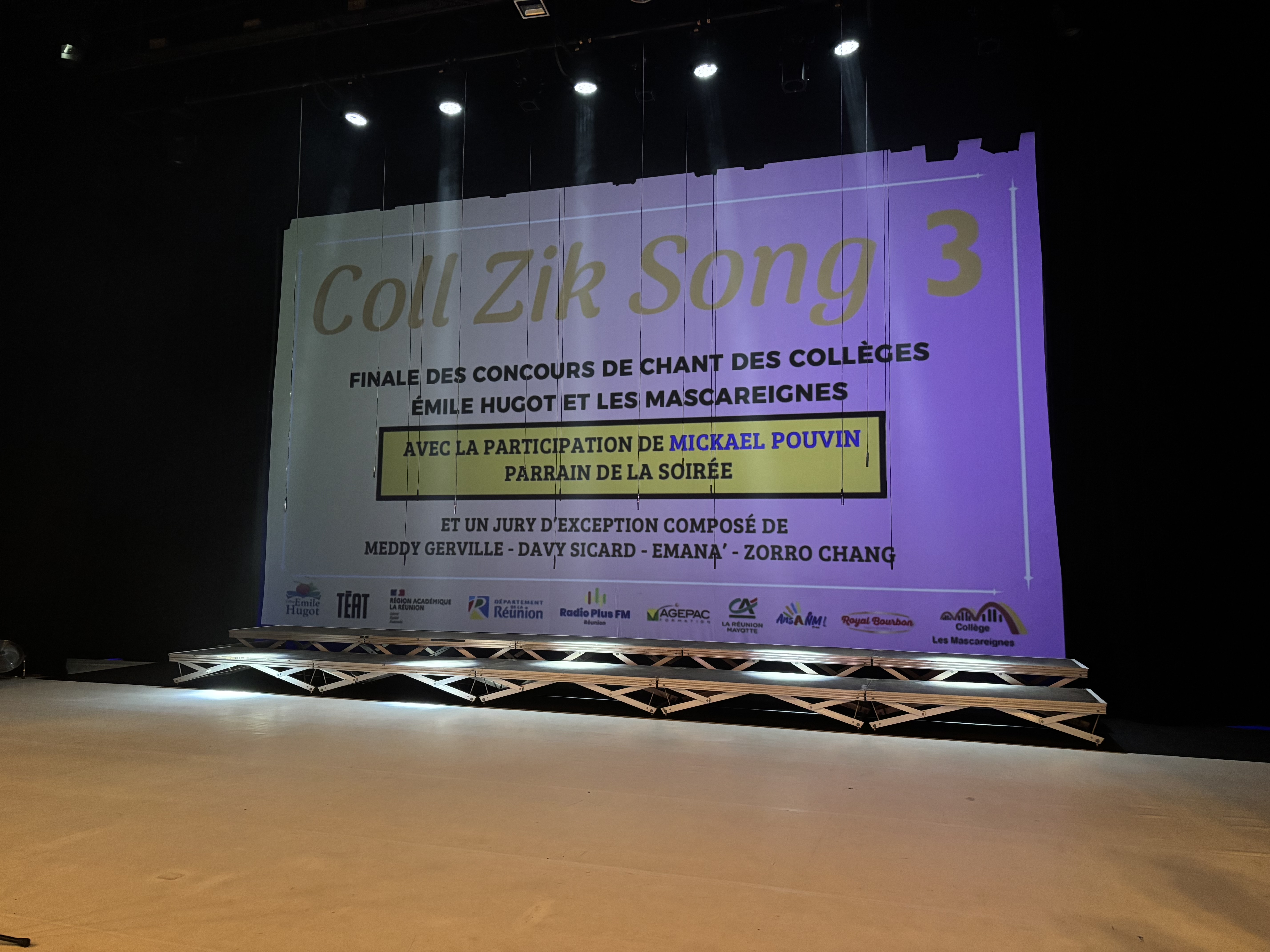 Nous sommes les élèves de la chorale (tous niveaux confondus ainsi que des élèves d’ULIS) et les 12 finalistes d’un concours de chant organisé par le collège Emile Hugot associé au collège des Mascareignes afin d’organiser un grand concert événement dans une des plus belles salles de l'île de la Réunion, le théâtre de Champ Fleuri.