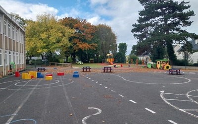 Une école maternelle de 150 élèves et une école élémentaire de 220 élèves regroupés dans un même bâtiment.
